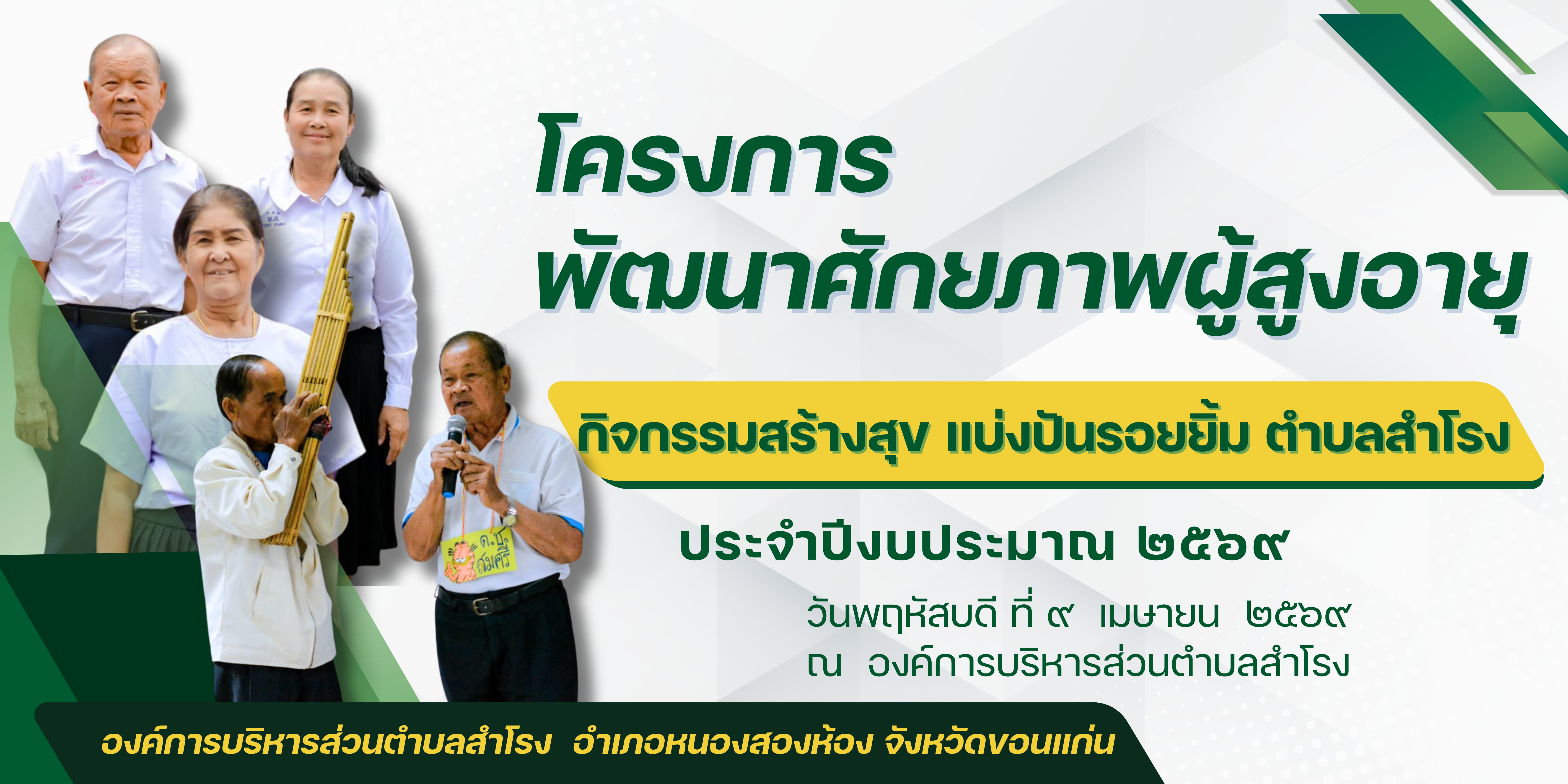 โครงการ พัฒนาศักยภาพผู้สูงอายุ กิจกรรมสร้างสุข แบ่งปันรอยยิ้ม ตำบลสำโรง ประจำปีงบประมาณ พ.ศ. 2569